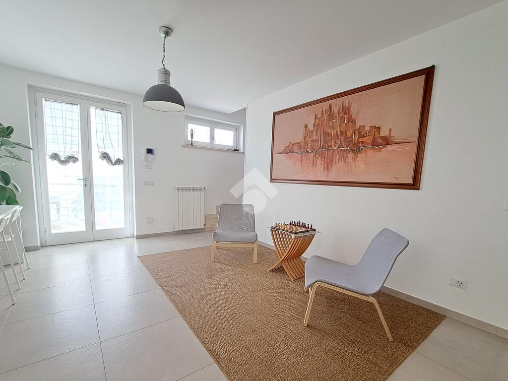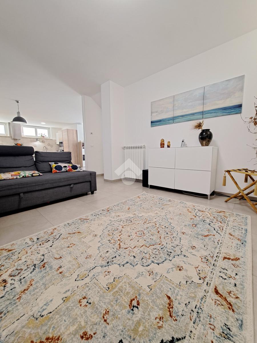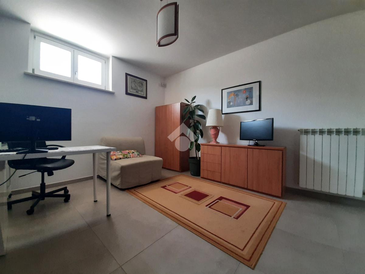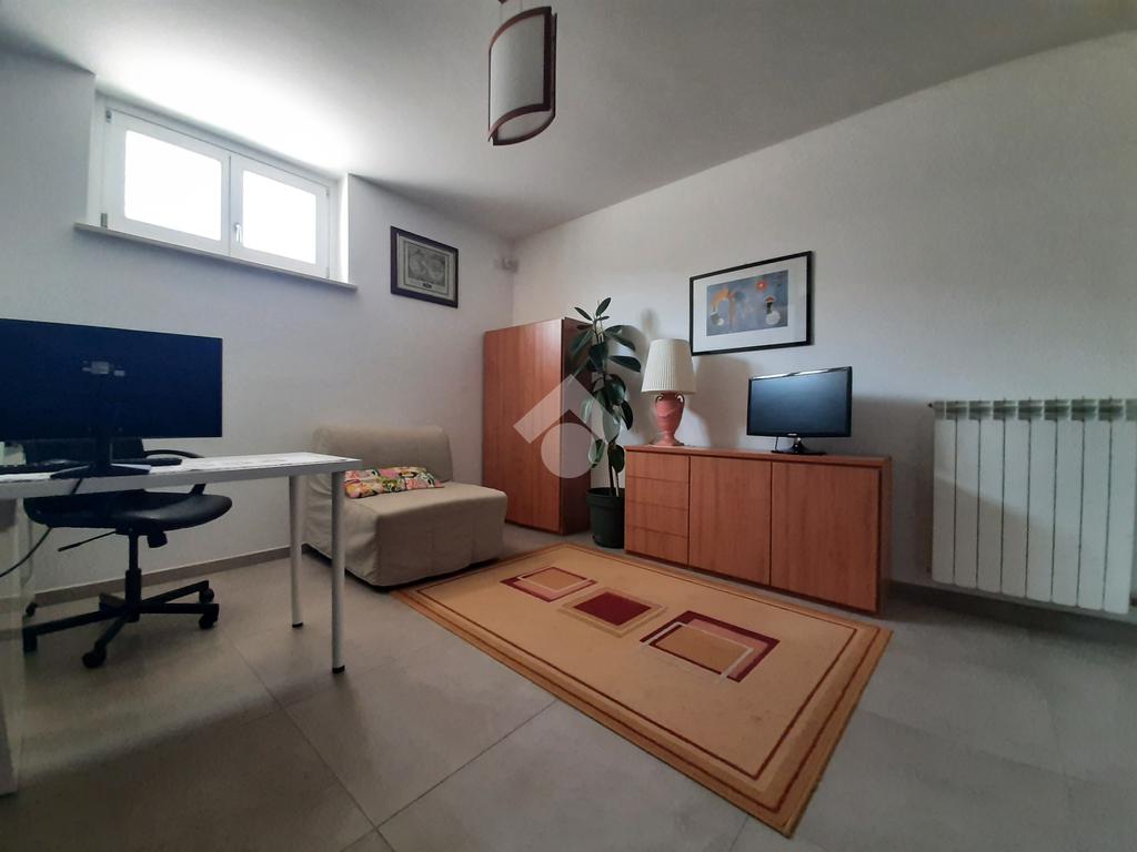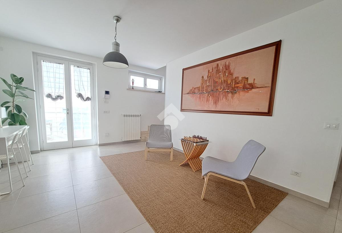 Nel piano seminterrato grande zona living con cucina a vista, una camera e un bagno.