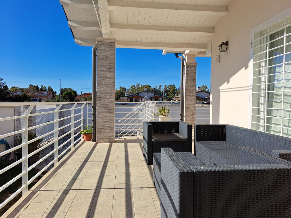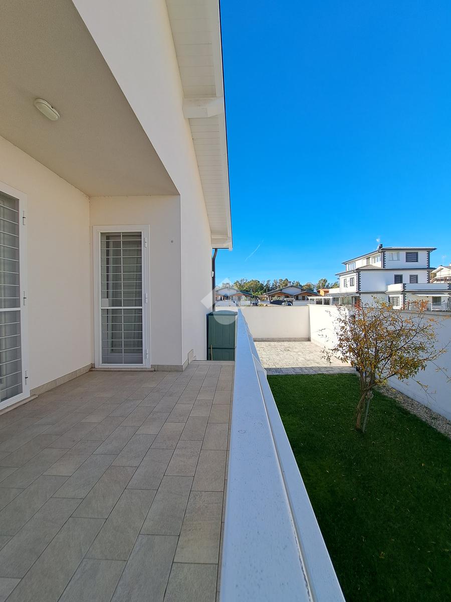 La casa gode di ampi spazi esterni in parte pavimentati e 360 mq. di giardino.