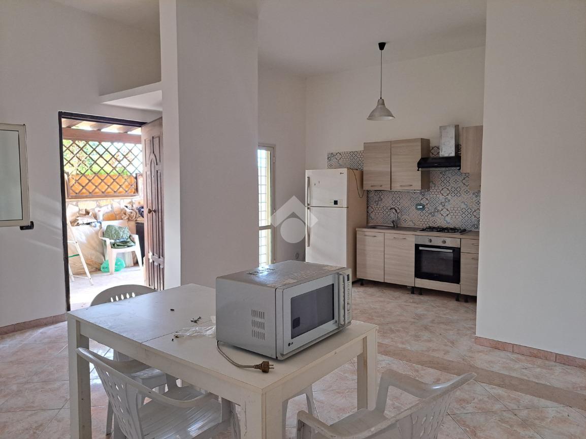 L'appartamento si compone di una zona giorno ampia con cucina a vista e la zona notte da due camere matrimoniali, un bagno con vasca e un ripostiglio. E' in buone condizioni generali ed è luminoso con doppia esposizione. Il giardino pavimentato abbraccia tre lati della casa offrendo un'area relax e per pranzi e cene all'aperto vista la presenza anche di un barbeque e un'area dedicata anche al parcheggio di una o più automobili.